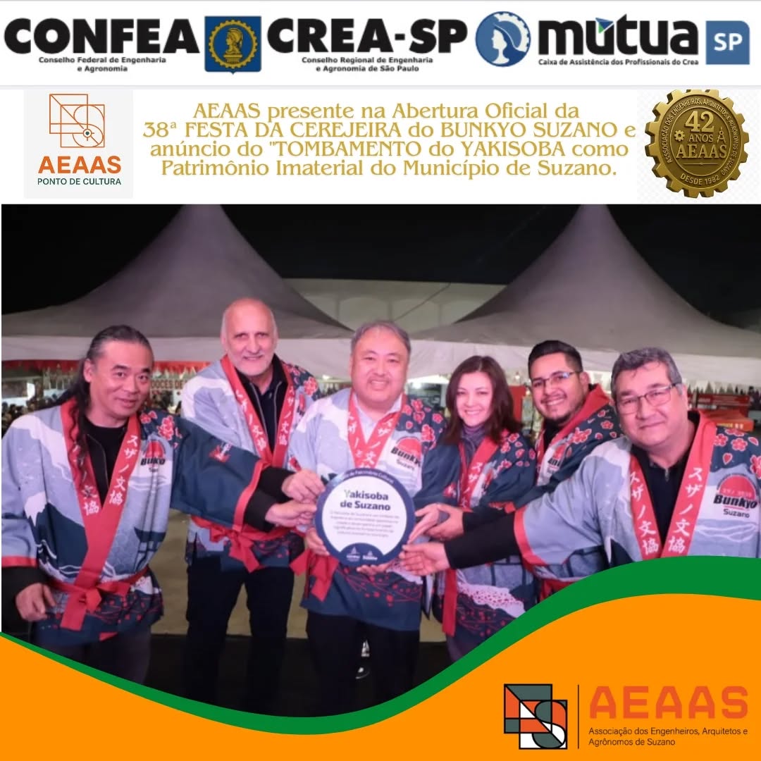 AEAAS presente na Abertura Oficial da 38ª FESTA DA CEREJEIRA do BUNKYO SUZANO e anúncio do “TOMBAMENTO do YAKISOBA como Patrimônio Imaterial do Município de Suzano.